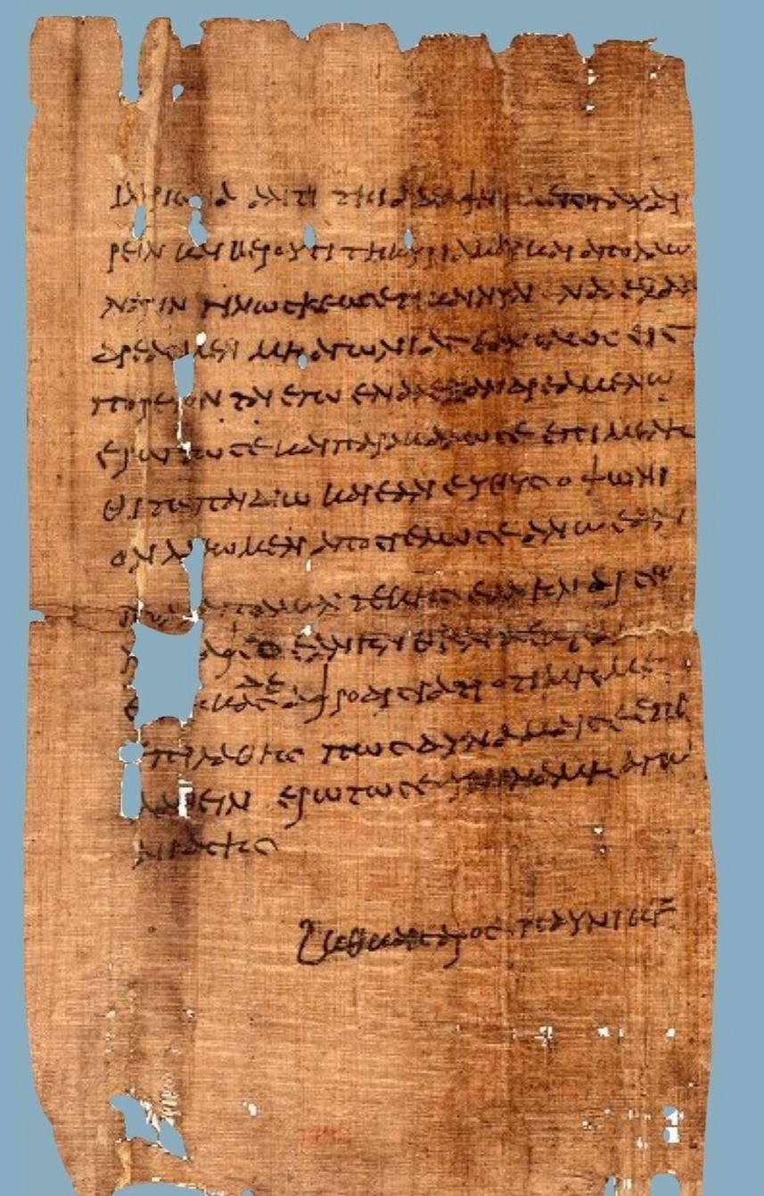 «Приветствие от Илариона к его дорогой Алисе, а также моему дорогому Бероусу и Аполлинариону! Знай, что мы до сих пор в Александрии. Не волнуйся, если все остальные вернутся, а я останусь в Александрии.